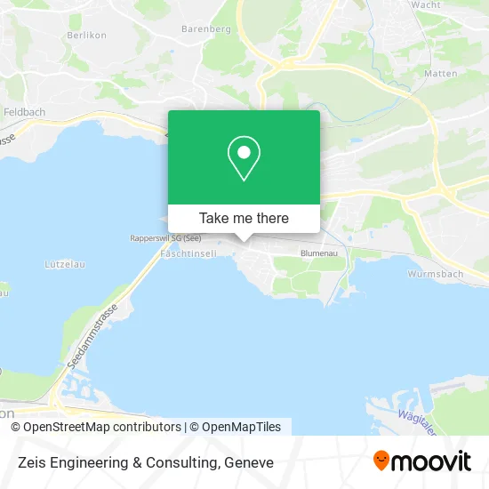 The nearest ferry station to Zeis Engineering & Consulting in Geneve is Rapperswil Sg Hochschule (See). It’s a 15 min walk away.