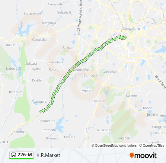 On the go? See why over 1.5 million users trust Moovit as the best public transit app. Moovit gives you BMTC (Bengaluru Metropolitan Transport Corporation) suggested routes, real-time bus tracker, live directions, line route maps in Bengaluru, and helps to find the closest 226-M bus stops near you. No internet available? Download an offline PDF map and bus schedule for the 226-M bus to take on your trip.