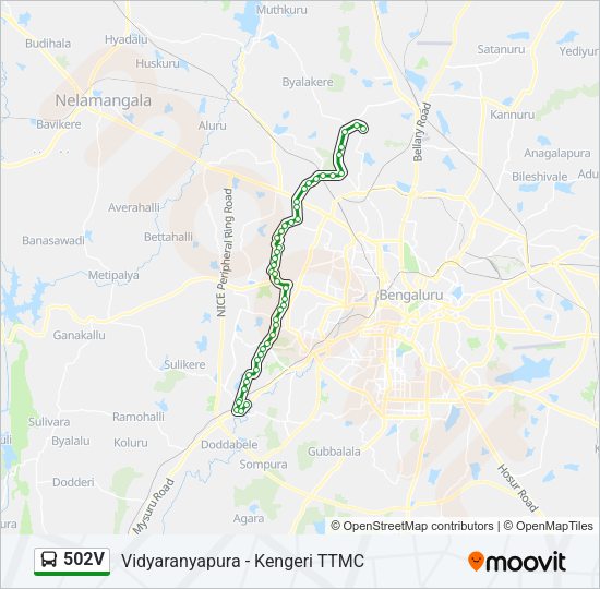 BMTC (Bengaluru Metropolitan Transport Corporation) 502V (Kengeri Ttmc) prices may change based on several factors. For more information about BMTC (Bengaluru Metropolitan Transport Corporation) tickets costs please check the Moovit app or BMTC (Bengaluru Metropolitan Transport Corporation)’s official website.