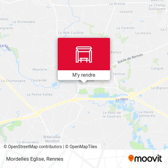 Itinéraire pour aller à Mordelles Eglise arrêt avec les transports en commun