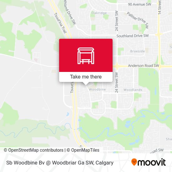 L'arret le plus proche bus station pour Sb Woodbine Bv @ Woodbriar Ga SW à Calgary est Sb Woodbine Bv @ Woodbrook Rd SW. C'est à 3 min de marche.