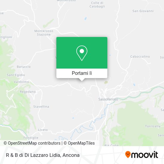 Ti permettiamo di effettuare il percorso verso R & B di Di Lazzaro Lidia facilmente, ecco perché oltre 1.5 milioni di utenti, inclusi gli utenti a Sassoferrato, considerano Moovit la migliore app per il trasporto pubblico. Non è necessario scaricare un'app solo per i bus o solo per i treni, Moovit sarà la tua unica app che ti aiuterà a trovare il bus o il treno migliore disponibile.