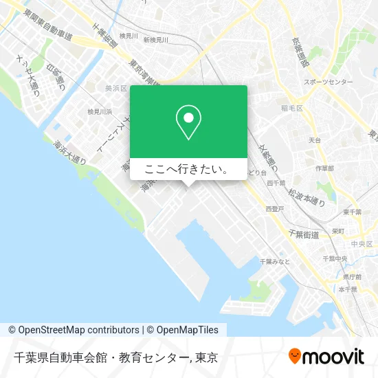 千葉市内の千葉県自動車会館・教育センターへのアクセス方法を知りたいですか?Moovitはあなたが最寄りの公共交通機関駅からステップバイステップの指示で千葉県自動車会館・教育センターに到達するための最良の方法を見つけるのをお手伝いをします。