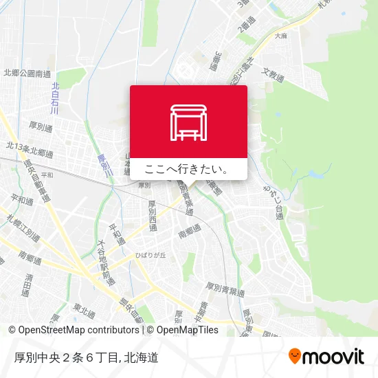 Moovitアプリをダウンロードすると、厚別中央2条6丁目を通過するバスルートの現在のスケジュールとステップバイステップでの道順を確認できます