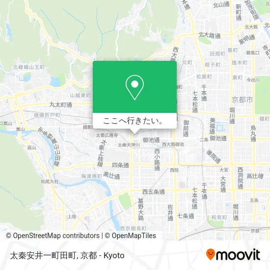 京都 - Kyoto内の太秦安井一町田町へのアクセス方法を知りたいですか?Moovitはあなたが最寄りの公共交通機関駅からステップバイステップの指示で太秦安井一町田町に到達するための最良の方法を見つけるのをお手伝いをします。