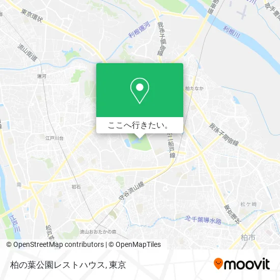 そこにもっと早く到着できるルートがあるかどうか見たいですか? Moovitはあなたが他のルートや時間を見つけるお手伝いをします。 Moovitアプリまたはウェブサイトから柏の葉公園レストハウスへの行き方および道順を簡単に取得できます。