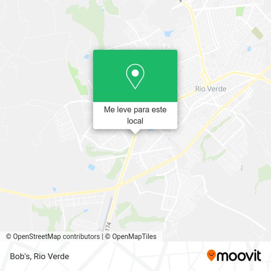 Quer saber como chegar a Bob's em Rio Verde? O Moovit te ajuda a encontrar a melhor rota para chegar a Bob's fornecendo direções passo a passo a partir da estação de transporte público mais próxima de você.