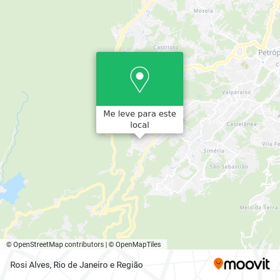 Direções para Rosi Alves, a partir dos locais mais visitados em Petrópolis, usando o transporte público.
