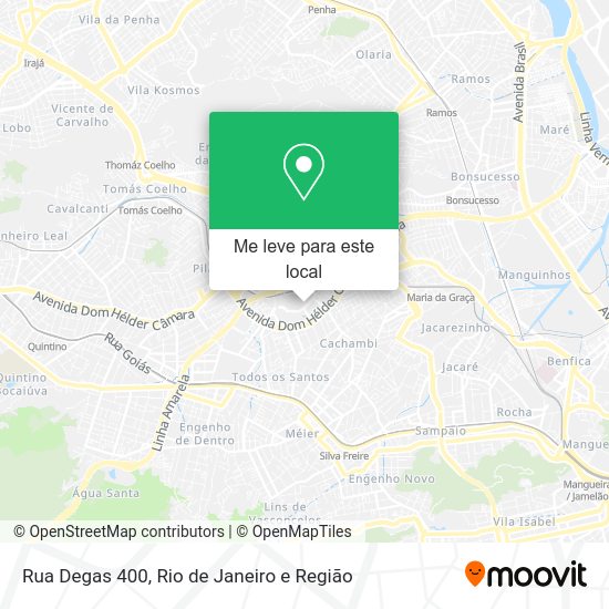 Facilitamos a sua viagem até Rua Degas 400 e é por isso que mais de 1.5 milhões de usuários, incluindo os usuários de Cachambi, confiam no Moovit como o melhor aplicativo de transporte público. Você não precisa baixar um aplicativo de ônibus ou trem separadamente, o Moovit é um app de mobilidade urbana completo, que te ajuda a encontrar os melhores horários disponíveis de ônibus ou trem.