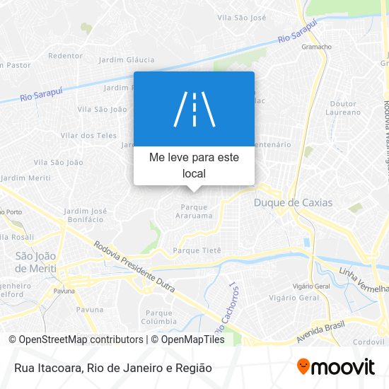 Direções para Rua Itacoara, a partir dos locais mais visitados em São João De Meriti, usando o transporte público.