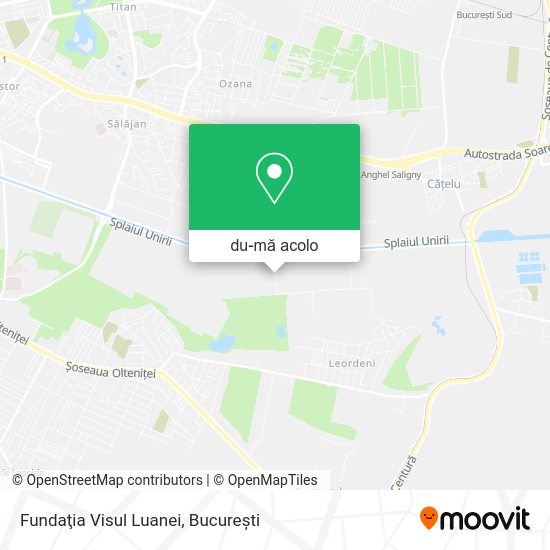 Facem călătoritul către Fundaţia Visul Luanei mai ușor acesta fiind motivul de ce peste 1.5 milioane de utilizatori, inclusiv utilizatorii din Popești-Leordeni, au încredere în Moovit ca cea mai bună aplicație de transport public. Nu ai nevoie să descarci aplicație individuală pentru autobuz sau tren, Moovit fiind aplicația all-in-one de transport public care te ajută să găsești cel mai rapid drum către destinație.