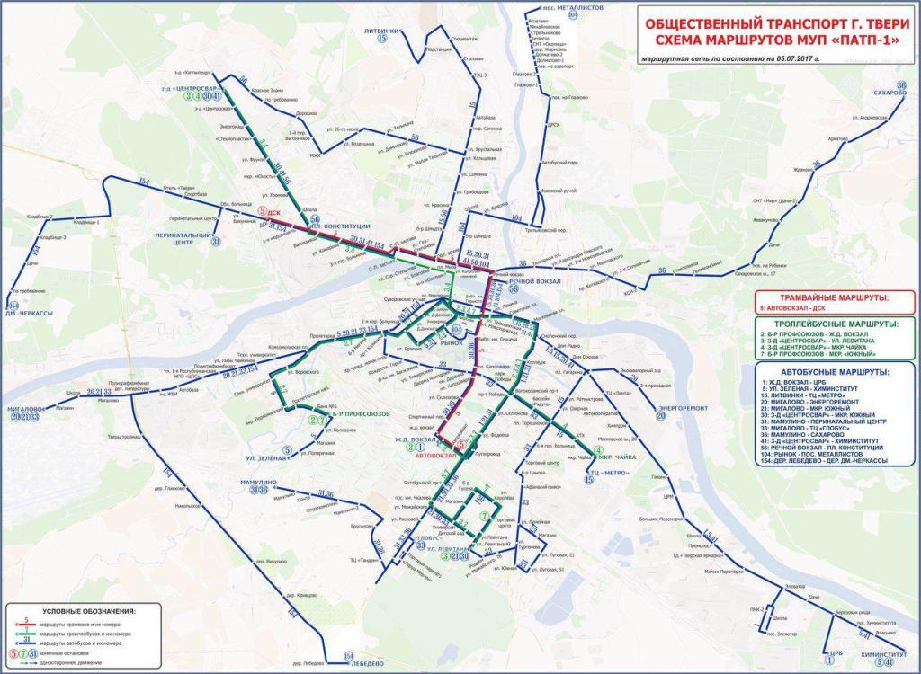 Схема движения транспорта Твери Оффлайн карты (PDF)