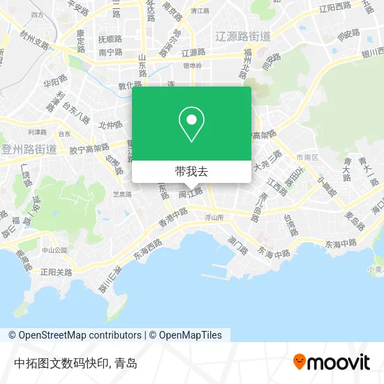 前往中拓图文数码快印更简单!这就是为什么成千上万的用户,包括市南区的乘客,信任Moovit作为他们公交出行的最佳选择。不需要下载多个公交或者地铁App,有了Moovit,囊括所有的公共交通方式,帮你找到最合适的公交地铁出发时间。