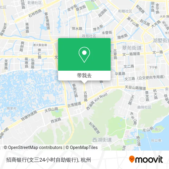 搭乘公共交通前往西湖区招商银行(文三24小时自助银行)