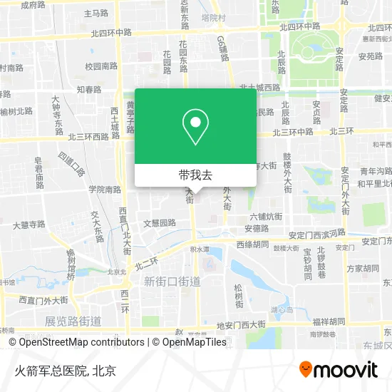 想知道如何去火箭军总医院?在德胜街道,Moovit帮助你找到坐公交地铁去火箭军总医院的最佳路线。