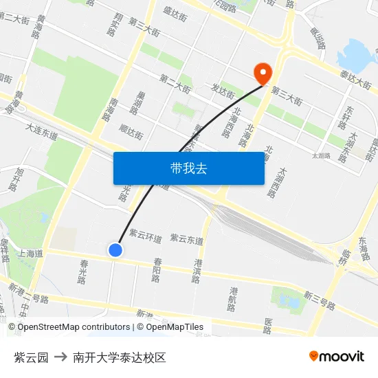 937路 公交线路从紫云园附近的东江路公交站站到东大街站。 从那里出发,您必须乘坐一条公交线路到天津中南开大学泰达校区附近的东大街站