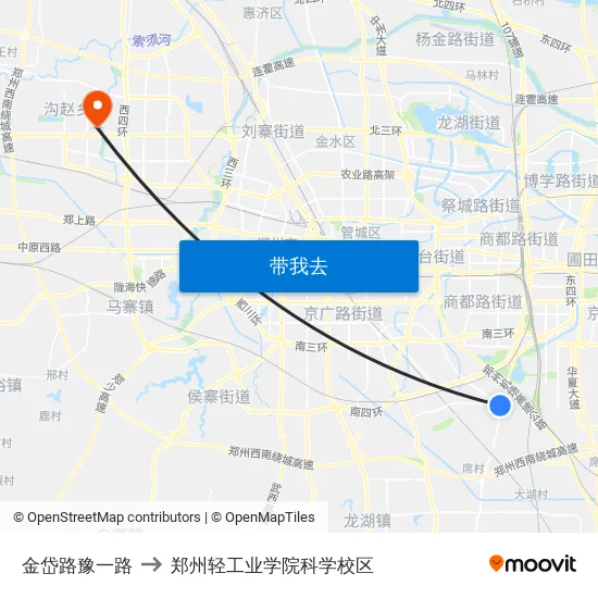 搭乘 公交 and 地铁 从金岱路豫一路前往郑州轻工业学院科学校区